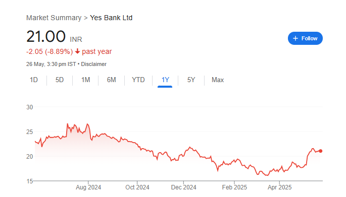 Yes Bank is a prominent private sector bank in India, established in 2004 by Rana Kapoor and Ashok Kapur. Headquartered in Mumbai, the bank offers a comprehensive range of financial products and services, including retail banking, corporate banking, and digital solutions, catering to individuals, small and medium enterprises (SMEs), and large corporations. Over the years, Yes Bank has expanded its presence across the country, operating numerous branches and ATMs to serve its growing customer base. Yes Bank Share Price on NSE as of 27 May 2025 is 21.00 INR.
